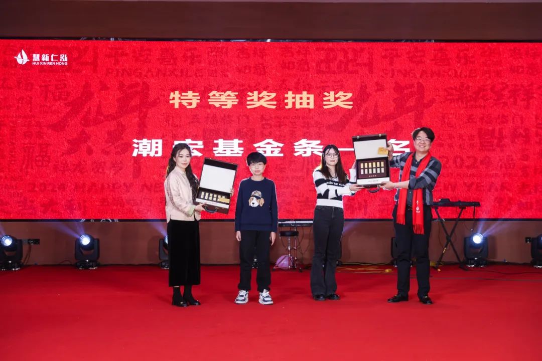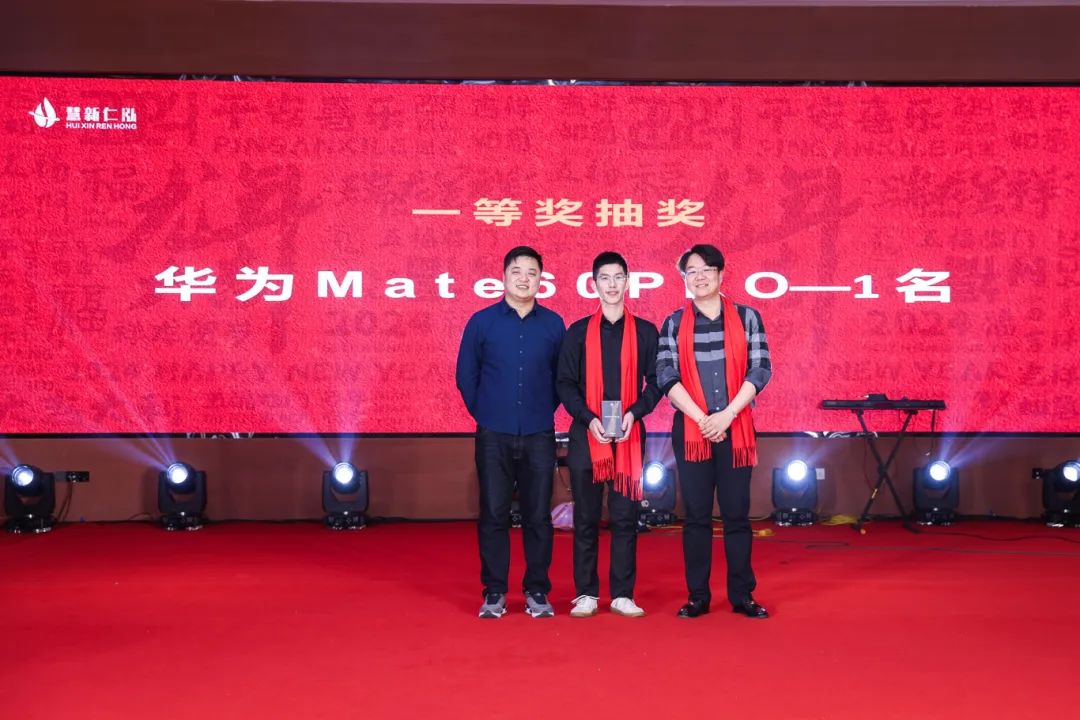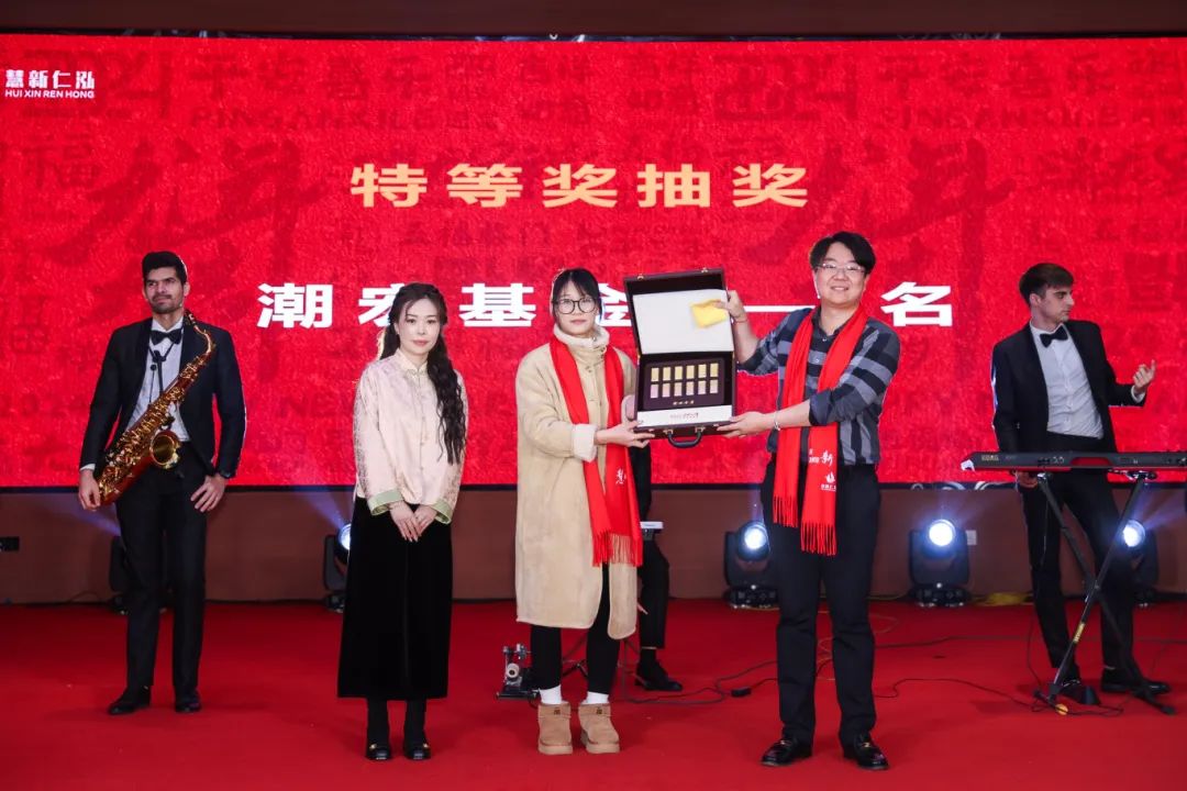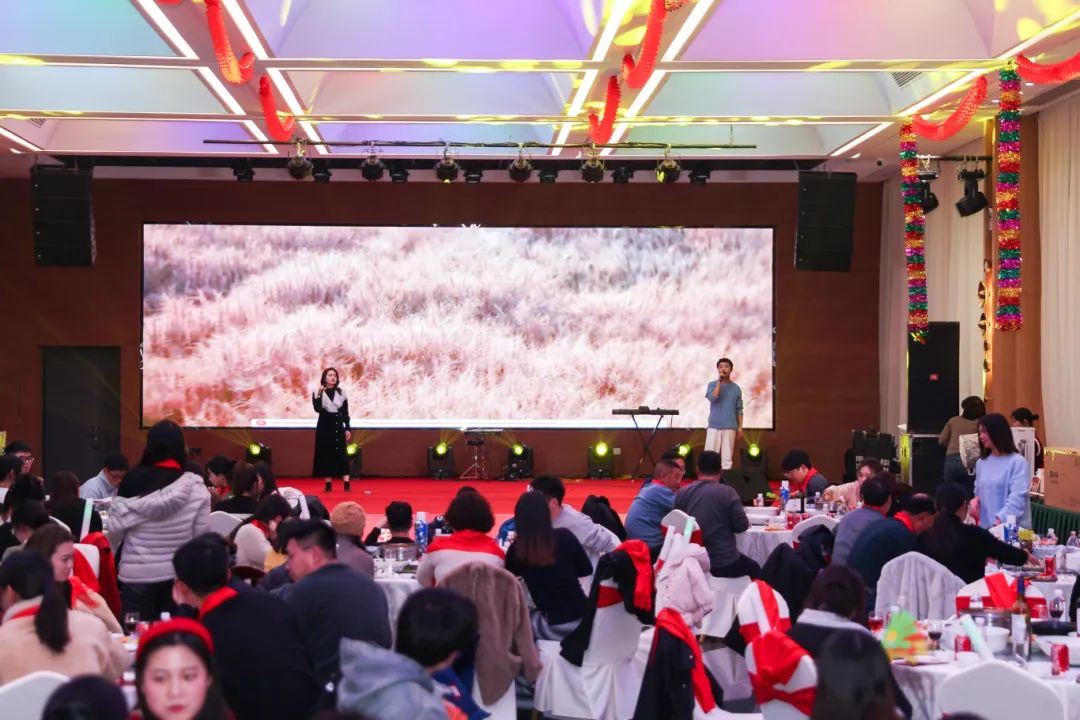 2日晚,全体员工与家属齐聚一堂,欢度新春盛典。本次活动精彩纷呈、惊喜不断,公司特邀请了专业的舞蹈团队与外国乐队,送上一场场视听盛宴。台上是精妙的演出和有趣的互动,台下则是掌声热烈、欢呼连连。而潮宏基金条、华为mate60 pro、Ipad10等活动奖品,更是将整场晚会的氛围推向最高潮。晚会结束后,公司还安排了烟花秀,用漫天花火为2023年画上句号。