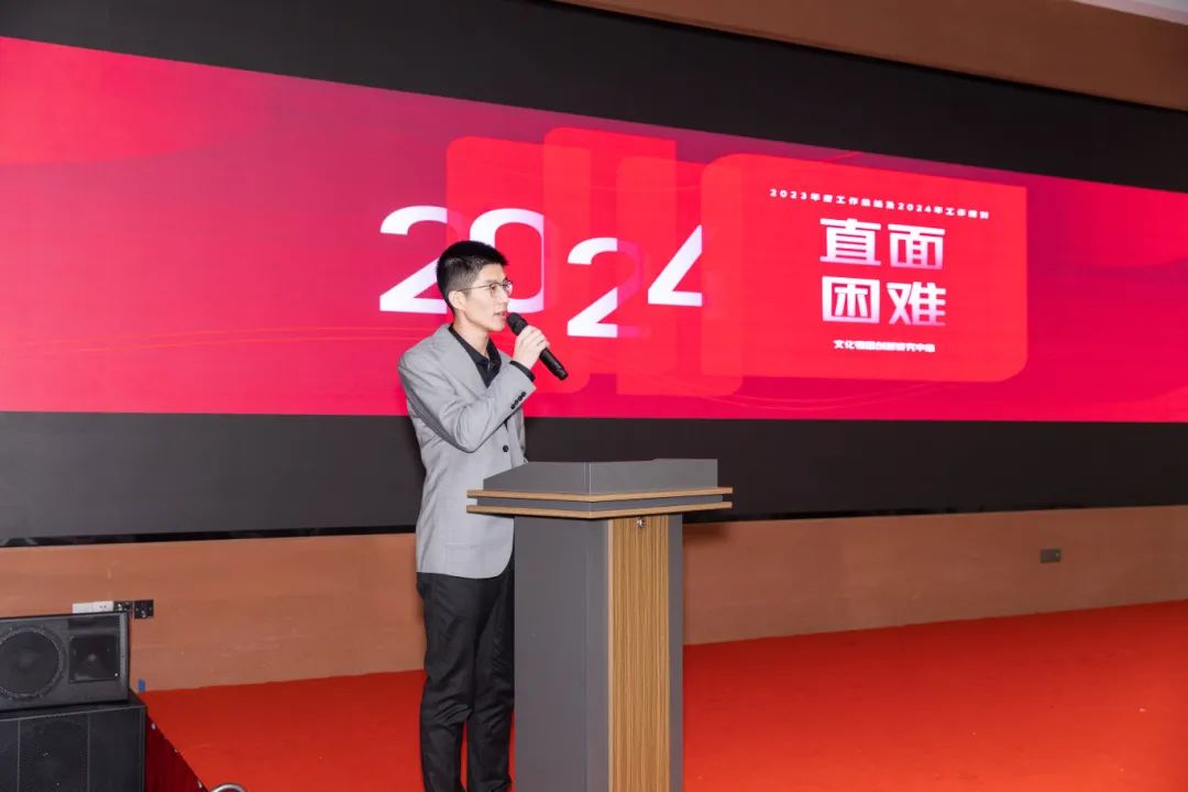 在领导致辞环节,公司总经理蒋逸带来最新喜讯,公司荣登宜城街道2023年度综合先进表扬名单光荣榜。蒋逸表示,在各部门呈上的成绩单上,看到了公司上下的成长、进步与坚持,公司持续稳定发展,不仅稳住了市场份额的基本盘,又布局了新的市场领域。同时公司还吸纳了优秀的资深专家与专业人才,通过新老员工的深度融合,实现了公司效益的进一步提升。希望大家在新的一年中,不断提专业素养和团队意识,加强交流沟通,共同为公司的长远发展贡献力量。