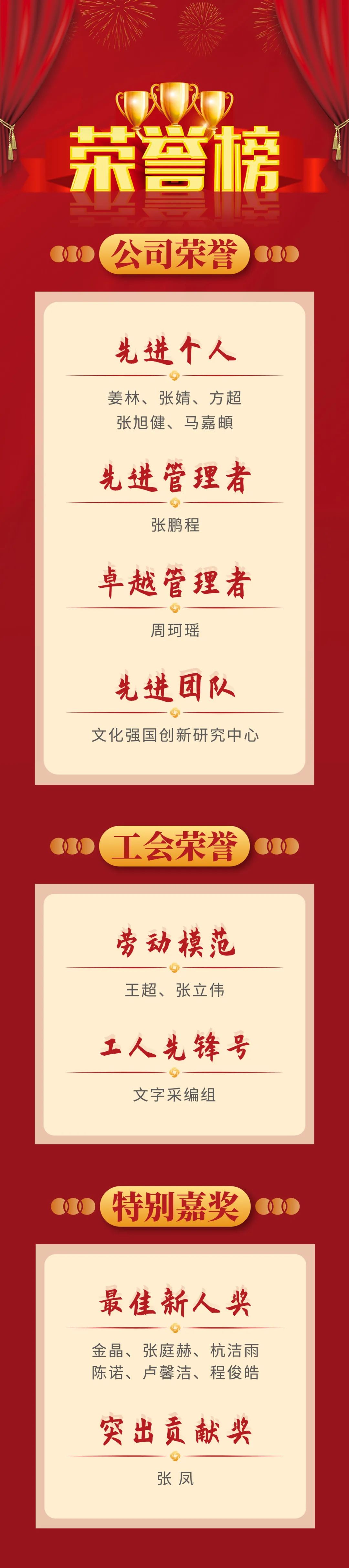 过去的一年里,公司涌现出了一批锐意进取的优秀员工,为树立典型、表彰先进,公司设置了劳动模范、先进个人、先进管理者、先进团队、突出贡献奖等多个奖项和荣誉称号,表彰有突出表现及贡献的员工、团队和管理人员。这些荣誉不仅是对获奖者的勉励,更是对全体员工的激励与鞭策。