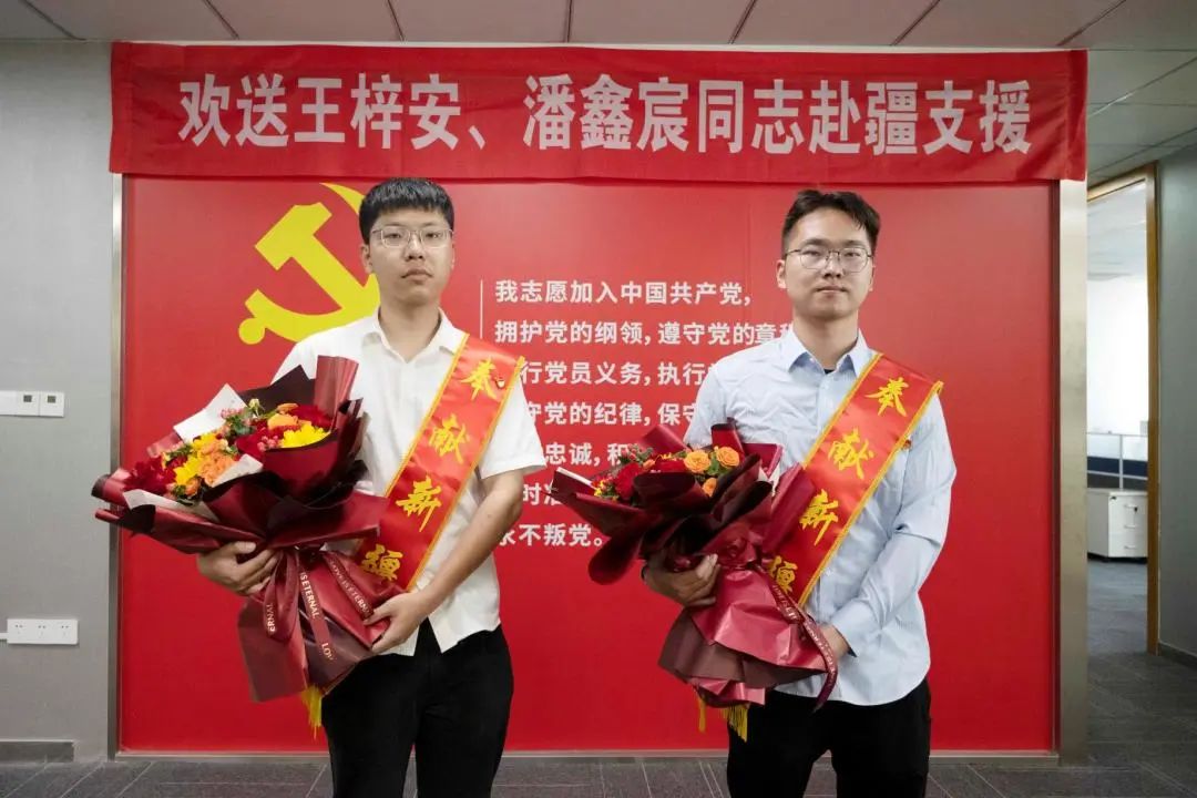 两名援疆同志王梓安和潘鑫宸表示,非常感谢公司给予的这次机会,他们将倍加珍惜,一定不辜负大家的期望。赴疆后听从组织安排,遵守工作纪律,发挥自身岗位优势特点,用“穿越黄沙不畏苦”的勇气,“红旗直上天山雪”的实干,为新疆建设尽一份心,为公司建设尽一份力,带着责任和情感圆满完成此次任务。