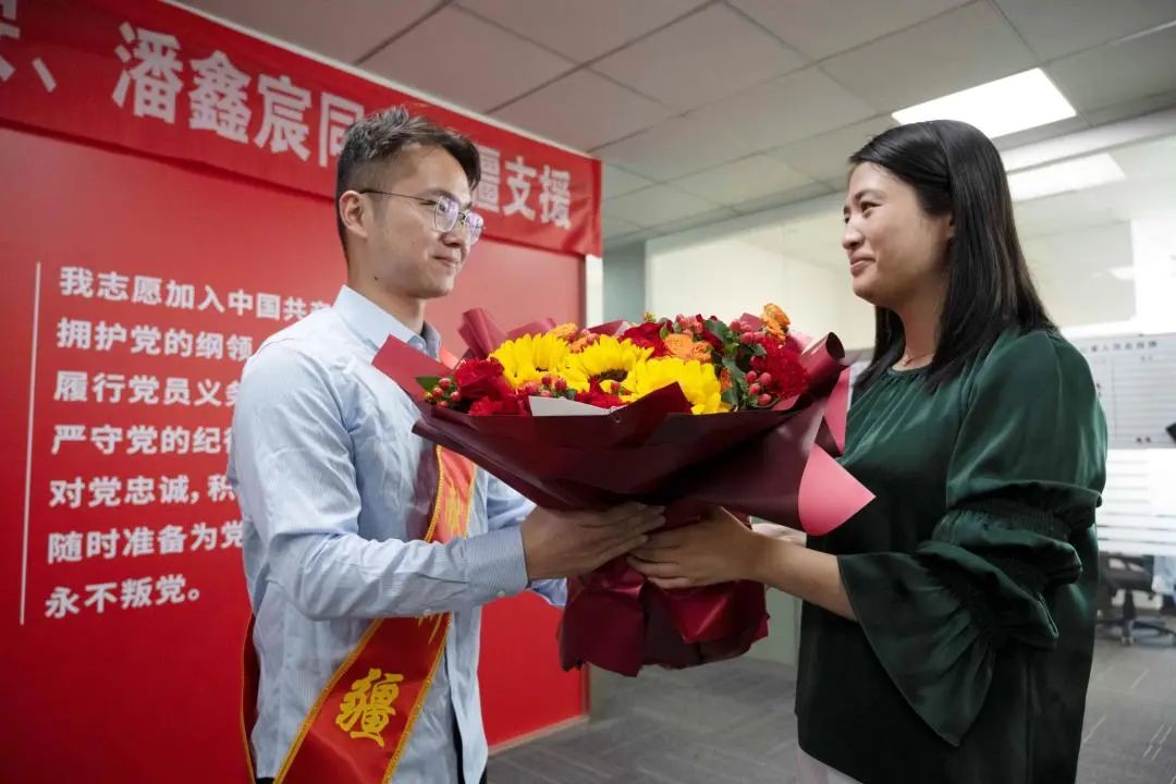欢送会最后,公司员工代表向两位援疆同志献上鲜花,预祝他们此次援疆活动圆满顺利。下一步公司将持续聚焦、积极参与开展相关活动,以高度的责任感和使命感发挥企业优势,加强对外合作,彰显时代担当。