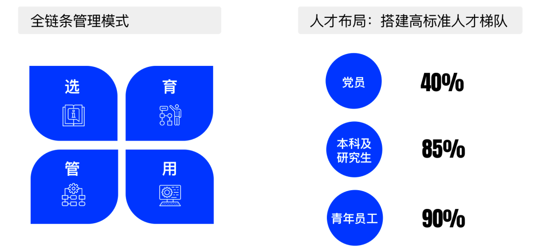 公司致力于搭建高标准人才梯队,全面推行“选、育、管、用”全链条管理。目前,公司已形成了成熟的人才布局机制,以人才引进与培育为抓手,持续加大高校毕业生、高端人才和优秀成熟人才的引进力度,柔性引进急需紧缺高层次领军人才,广开“聚才”之路。