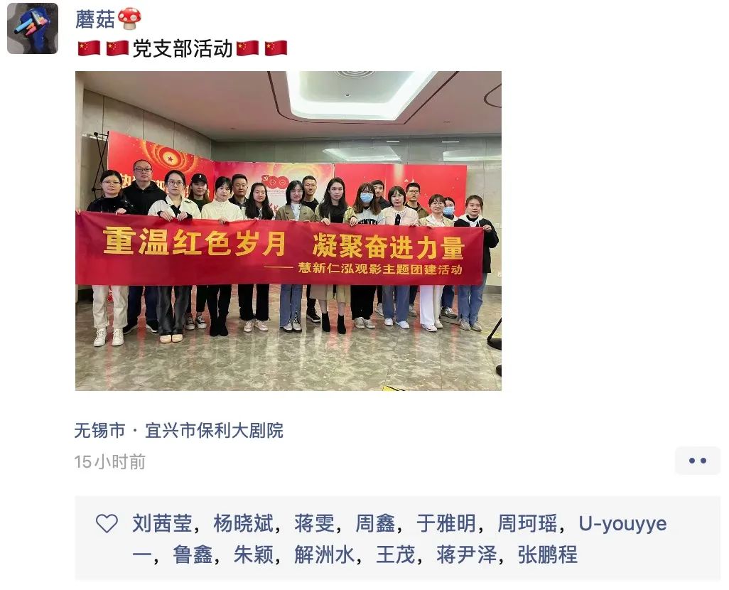 10月20日晚,公司组织全体在宜兴的员工到宜兴保利大剧院观看了爱国主义电影《长津湖》。一起缅怀先烈,铭记历史,致敬英雄,牢记担当,弘扬爱国精神,激发爱国热情。