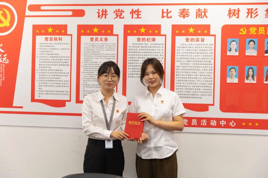 入党宣誓仪式结束后,党支部书记周颖为摄影比赛获奖选手进行了颁奖。6月17日以来,公司党支部开展“喜迎二十大,党在我身边”主题摄影比赛,公司全体员工积极参与,通过相机镜头的特殊视角,抒发对党和国家的热爱之情,以实际行动迎接党的二十大胜利召开。经过员工踊跃参赛,共计遴选出17幅主题鲜明、立意精巧、内涵丰富的摄影作品,最终评选出三个最佳作品奖项。这些摄影作品充分反映了大家在党旗、党徽下成长、奋斗、建功的精神面貌,展现了公司职工风采。