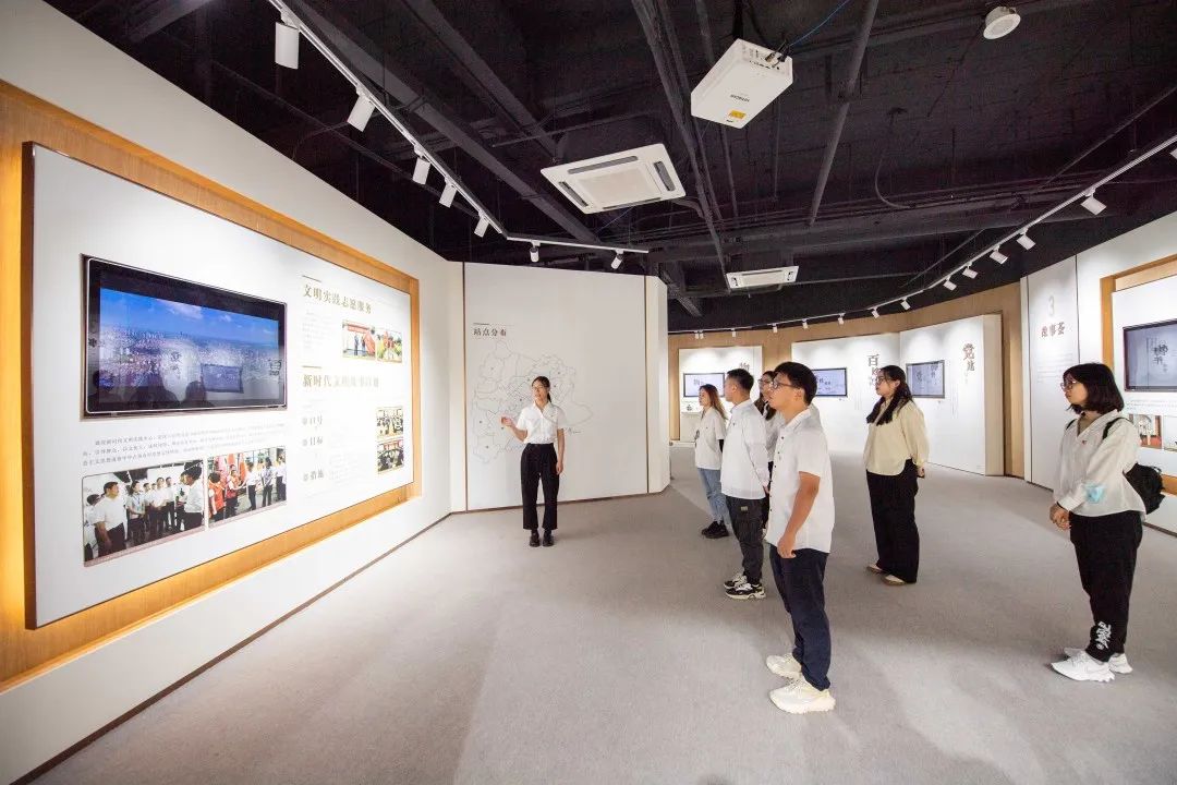 伴随着工作人员的讲解,展示墙上的一张张照片仿佛昨日重现,一行行文字记录着“电蜜蜂”挥洒的汗水与闪耀的青春。青年团员们聆听着中国好人“蜜蜂行动”志愿服务队的故事,认真参观基层思想宣传工作的优秀成果,不时驻足观看。“奋斗是青春的主旋律,而奋斗离不开群众。我们作为青年团员,要想群众之所想,培养起心系群众的社会责任感,以群众的满意作为工作的动力。”青年团员周镇说。