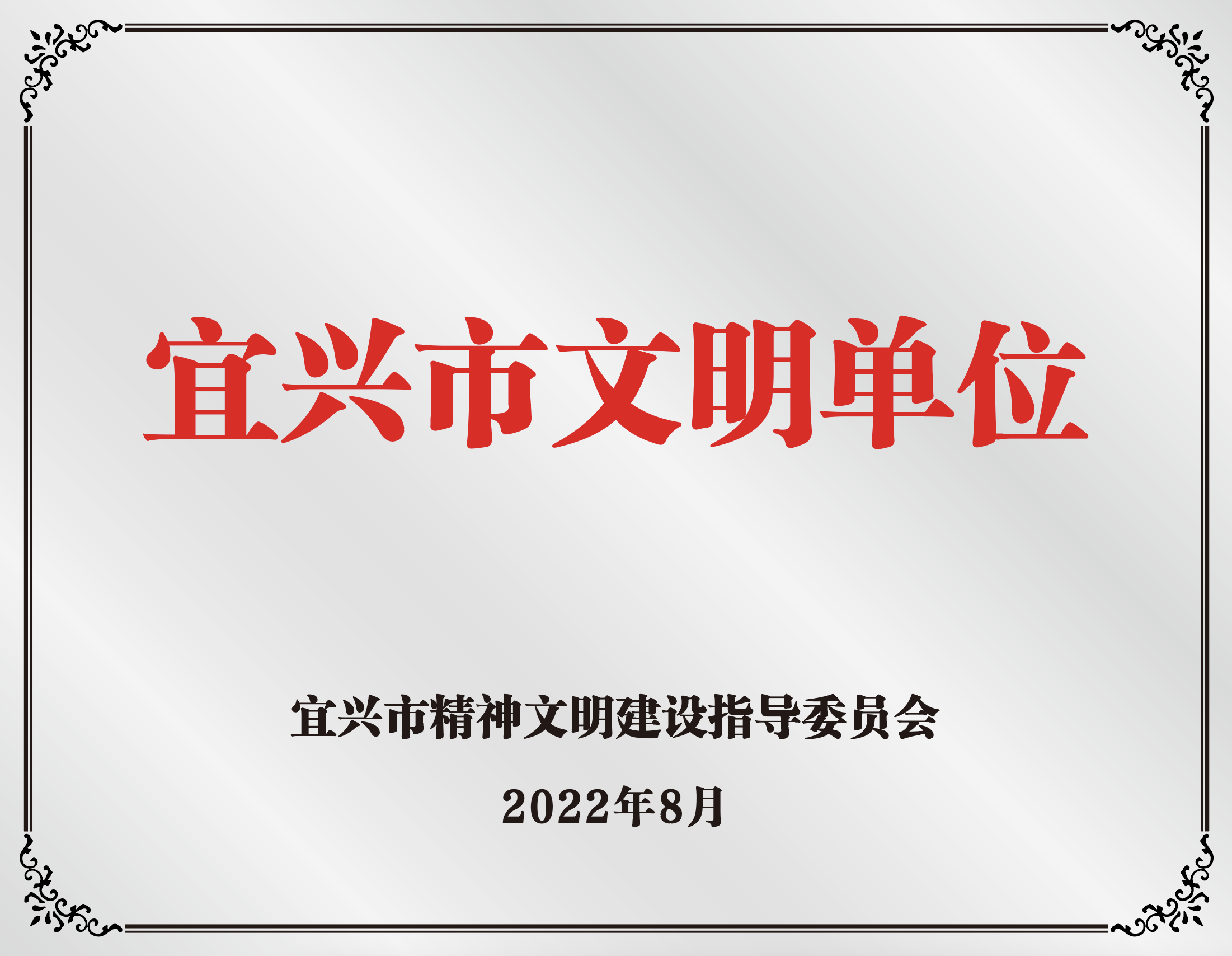公司荣获“2019-2021年度宜兴市文明单位”称号